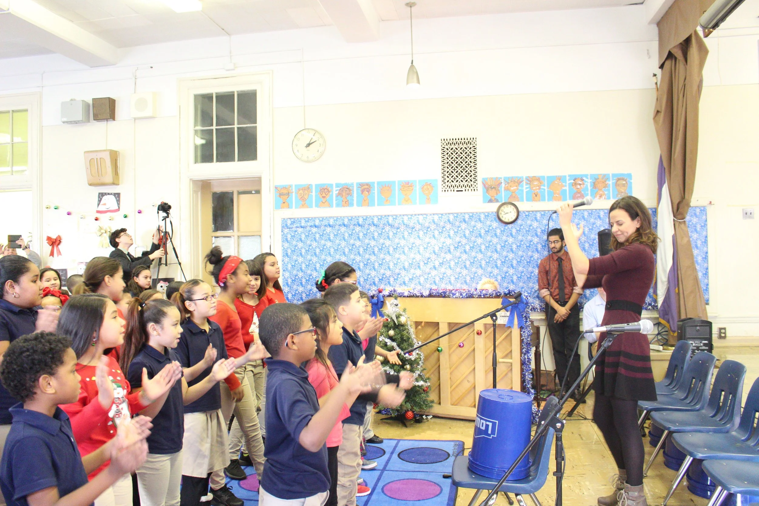 Mandy Gonzalez waved back with a wide smile - she’s not a teacher, parent or a friend, but a Broadway star who had just stopped by the school one bright, early morning in December to spend time singing and speaking with the young students.